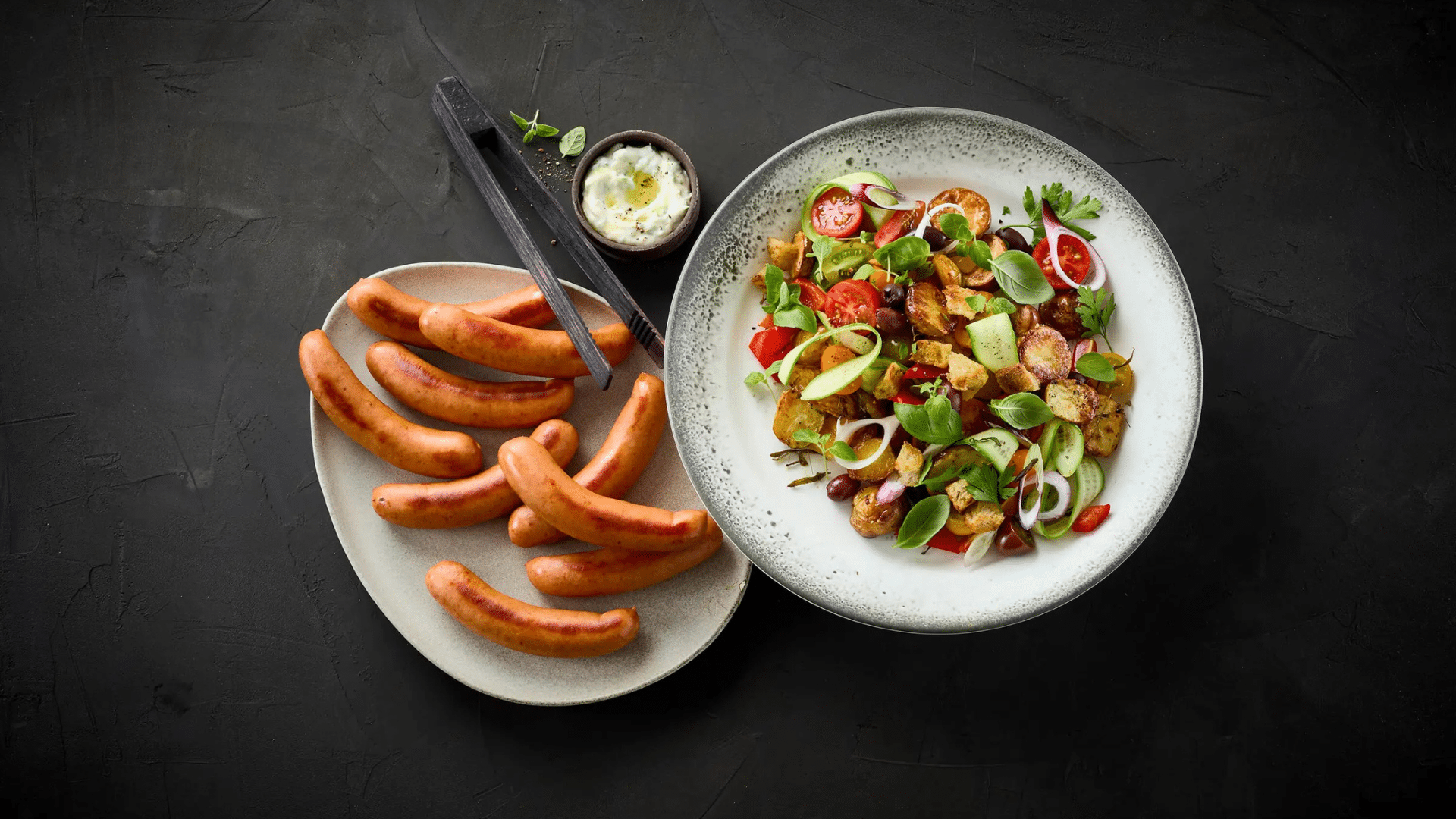 Vi har været i køkkenet og eksperimenteret med de nye formater, og deler hermed lidt inspiration til tre lette retter, der kombinerer de saftige pølser med friske smage i form af grønt og aromatiske urter.